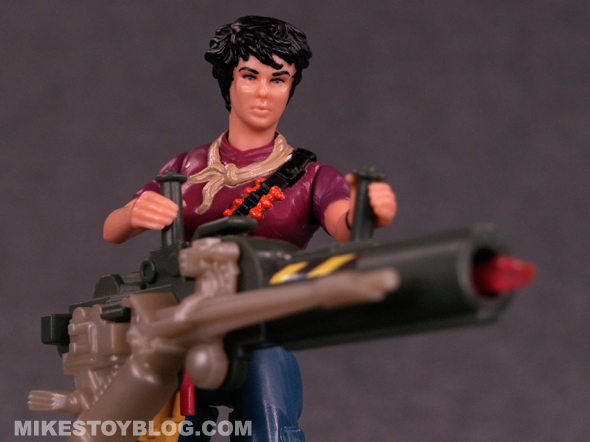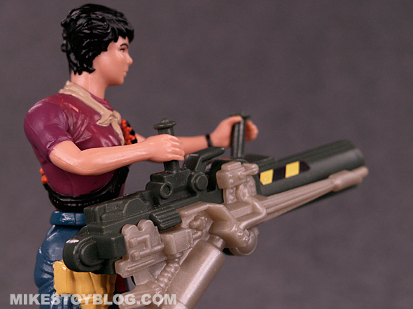 Ripley comes with a small number of accessories. The big ticket item is of course, the flamethrower. It’s slightly oversized and not really a good representation from the movie. But, It looks great in its own right. The other accessories are a small gun and a comic (the comics weren’t very good, but did help establish the characters a little bit as there was no TV show tie-in for these toys). There are also stickers included, but my problem with these are they don’t tend to stick very well.