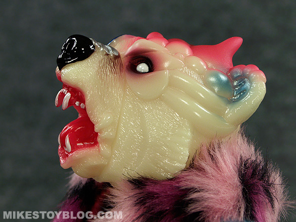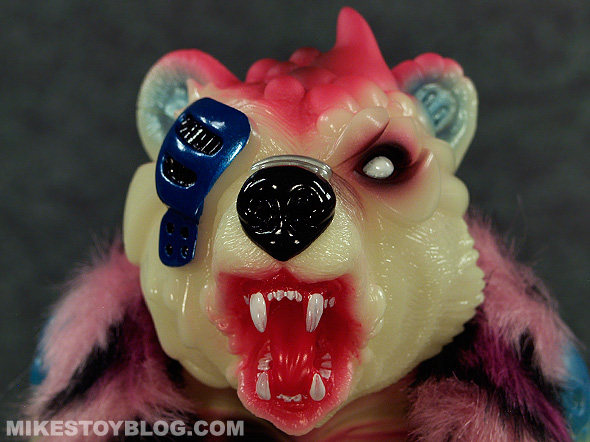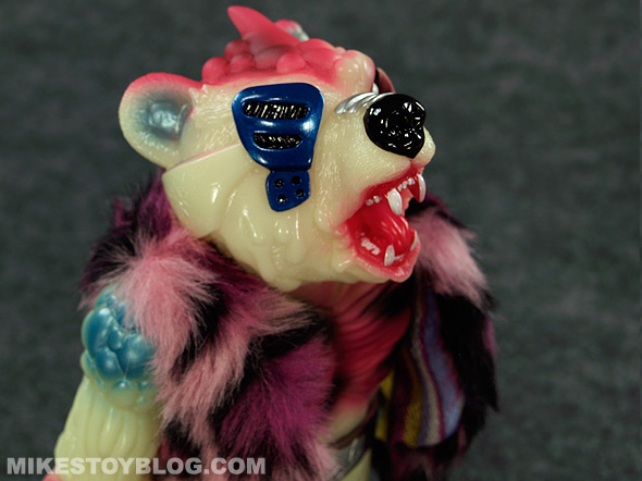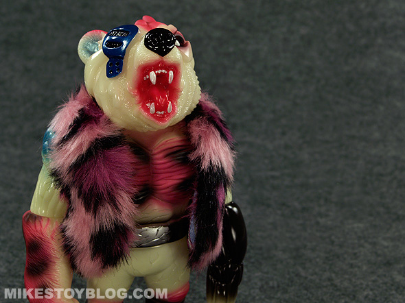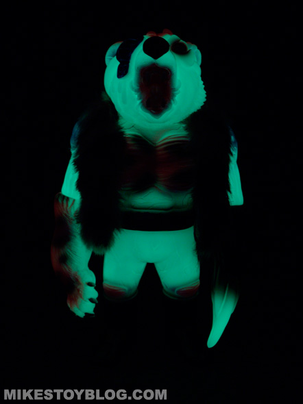 This particular Bear Ottoman is quite the opposite it has a pretty electric colour scheme and it really pops. I also love that it has been cast in phosphorescent (glow-in-the-dark) vinyl which adds another layer of cool to the figure. (I do love me some glow in the dark figures!)