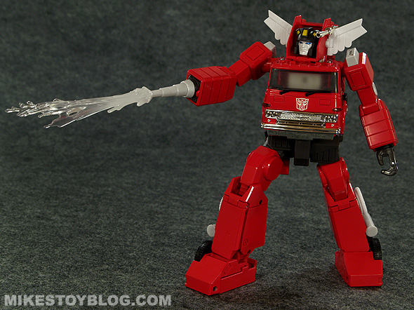 Inferno comes stacked with oodles of accessories Takara Tomy shows everyone how it’s done (Bandai and Hot Toys, I’m looking at you) with useful and even cartoon episode-specific accessories. I had a lot of fun playing around with the many different chest pieces and hand/arm blaster combinations you can have. The options are almost endless and you can find a mix your happy with (to make it clear as if it’s not already, my go to is: animation model head and toy truck parts for the chest and arm). Plenty of posing options with the water spray effect for example.