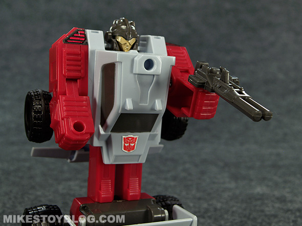 As with most G1 Transformers, his articulation is due to his transformation which is just his arms have any real movement. he can bend his elbows and partly swivel his arms at the shoulder and that’s about it! pretty much the definition of a ‘brick Transformer’. His Transector has more articulation then Ranger does.