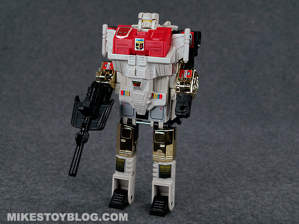 Like most transformers any articulation with these first transformers toys are going to be part of the transformation process. His arms move about 90 degrees, and his head can look down. That’s about it. He is definitely a brick with questionable legs to stand on. The legs have always been a bit weak and flimsy – even when brand new as I remember the one I had as a child having loose legs right out of the box.