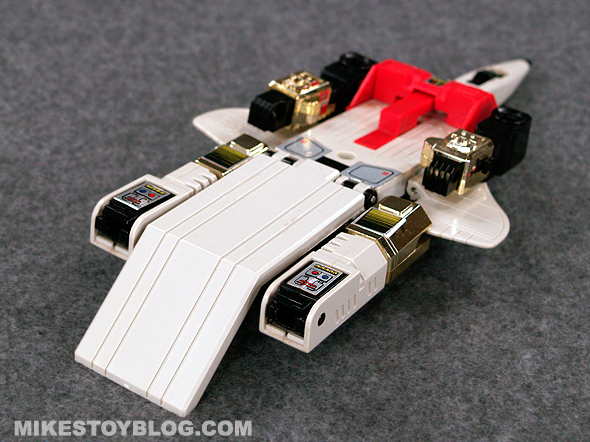 Not a lot of paint on Silverbolt. I guess you could count the vac metal as paint, perhaps? Sliverbolts’ details are made up with stickers mostly. If you are buying a used condition piece, make sure to check the chrome condition of its arms and legs.